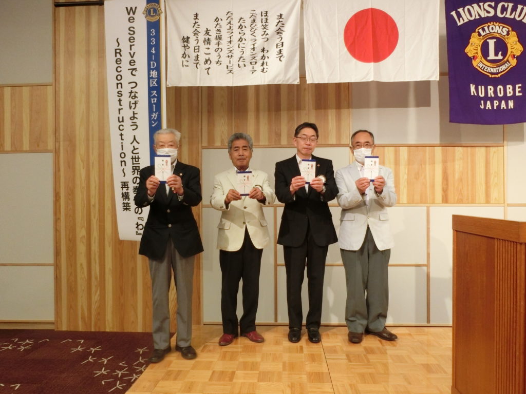 2023-2024 7月度第一例会 2023年7月6日 2023年8月5日 2023年8月5日 / 活動報告 2023-2024 334D 1R3Z 黒部ライオンズクラブ会長挨拶 谷村一成会長 スローガン 楽しもう!広げよう!つなごう!アクティビティさあ 皆さんご一緒に頑張りましょう! . . 相澤幹事 よろしくお願いいたします。 . . 前年度例会出席優秀賞 ダイヤモンド賞(皆勤賞)の方々です。 . . 続きまして金賞、銀賞、銅賞、錫賞の方々です。 皆さん、受賞おめでとうございました。