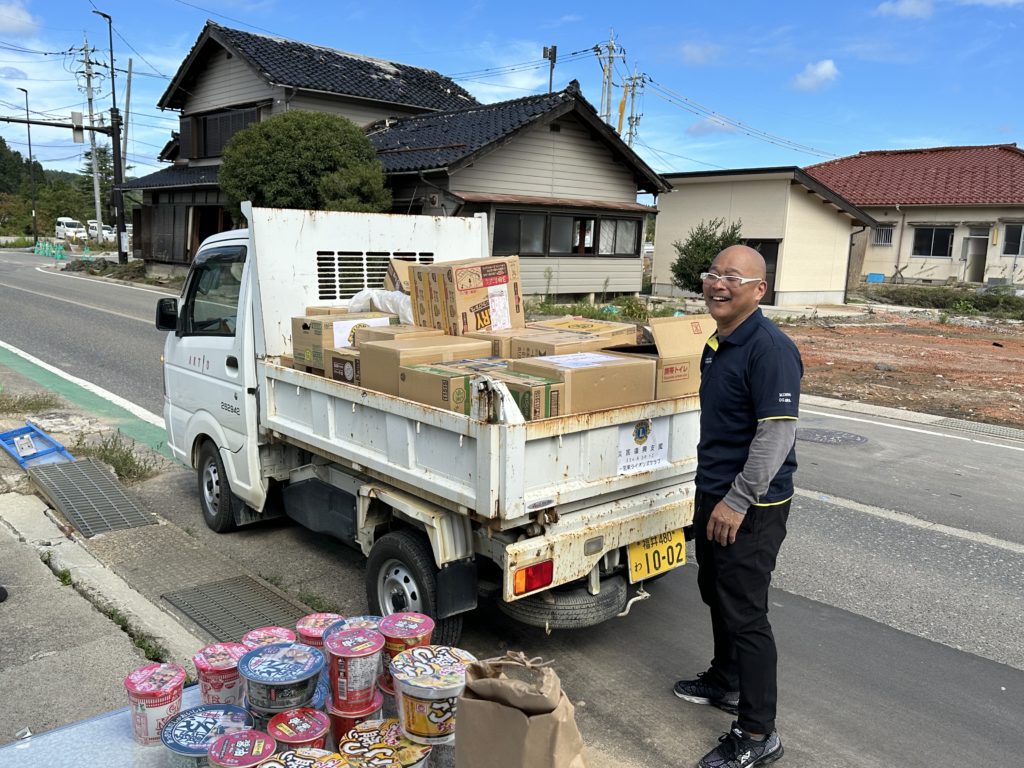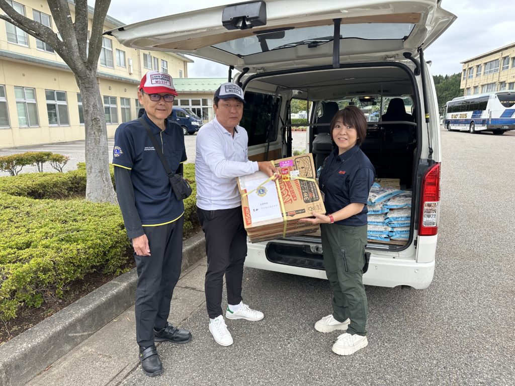 2024-2025 能登半島豪雨災害 支援物資の提供 2024年10月6日 2024年10月9日 2024年10月9日 / 活動報告 令和6年9月21日から23日にかけて能登半島で発生した豪雨災害に対し、支援物資の提供を行いました。 富山西ライオンズクラブのメンバーが届けてくださいました。どうもありがとうございました。お疲れさまでした。 黒部ライオンズクラブからは、「水500㎖ 72本」「カップラーメン 100個」を送りました。