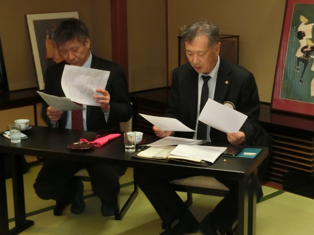 青少年育成事業として、松倉委員長(左)より経過報告があり、子ども食堂への支援についてお話がありました。今後、検討を重ね、実現することになります。また、会員増強について、熊野委員長(右)より経過報告があり、6名の候補者がいることのことでした。ぜひ、入会につなげていきたいものです。