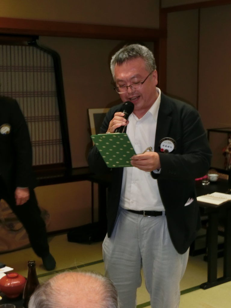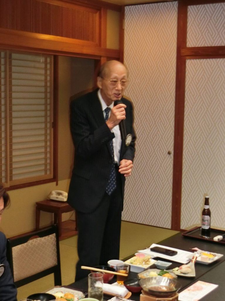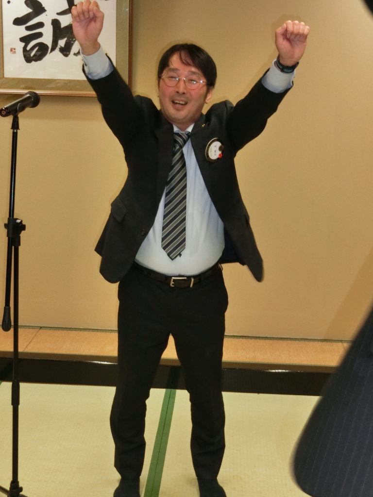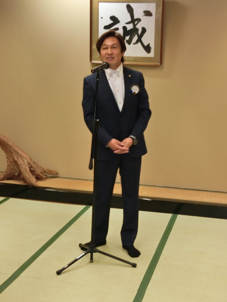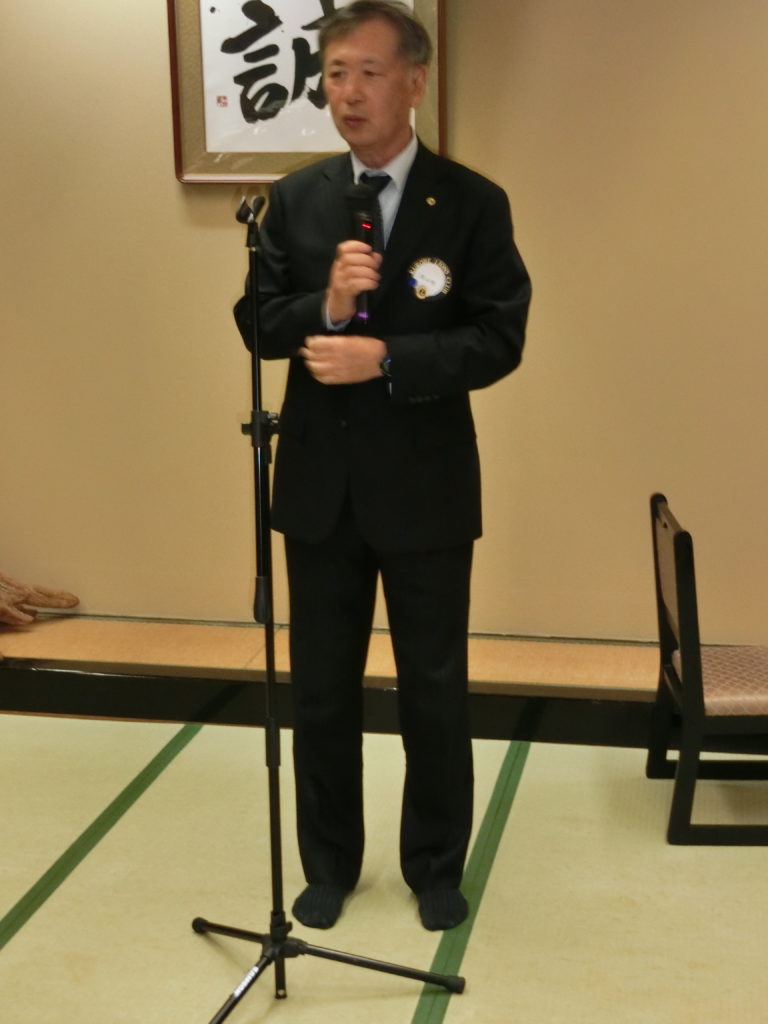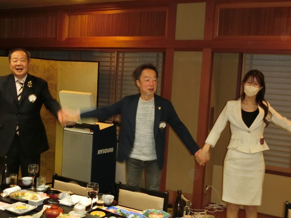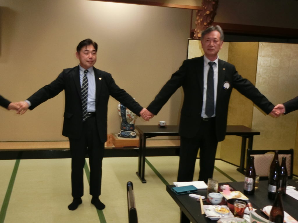 ローア L小柳(上左)、閉宴あいさつ 飯塚第一副会長(上右)よりいただいた後、全員手をつないで また会う日まで♫ よかったね!