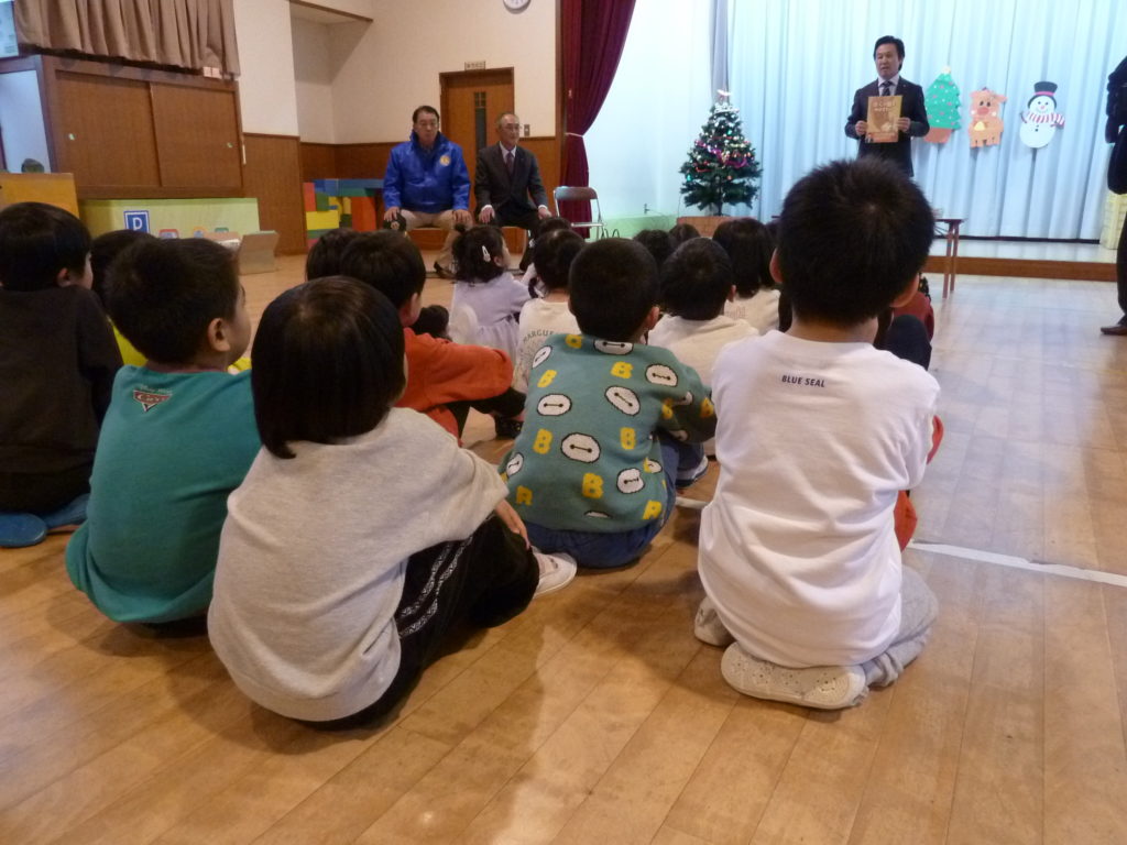 贈呈後、園児のみなさんに感謝の言葉をいただきました。「あーりーがーとーうーごーざーいーまーしーた」
