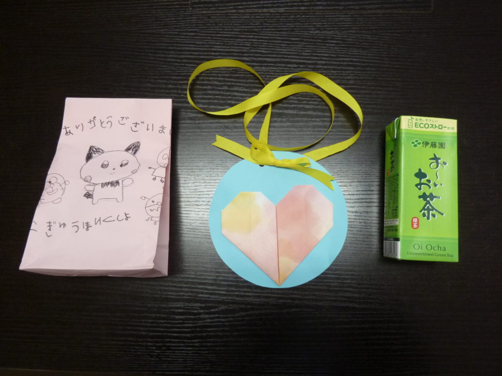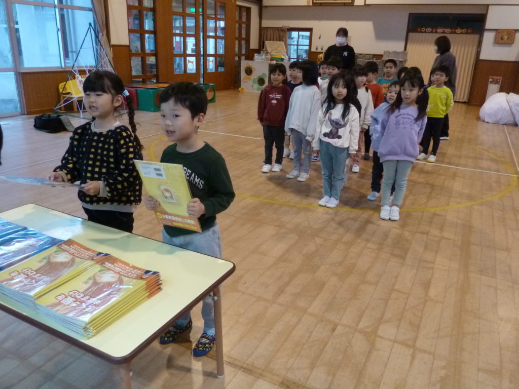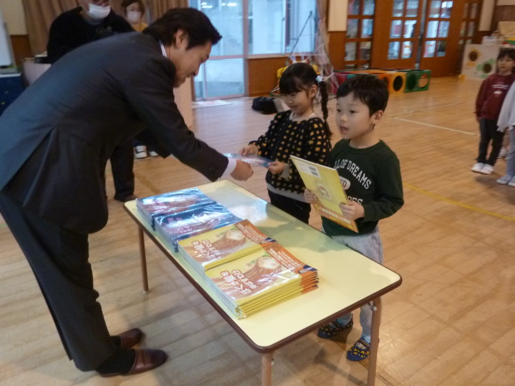 なんと、おみやげまでいただいちゃいました。絵本を読んで、やさしく思いやりのある子にそだってほしいな~